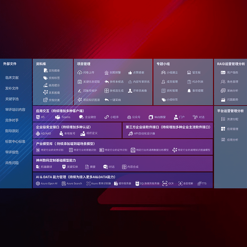 医疗器械产品上市前,,,,要熟悉严格与繁复评审标准,,,整理分析监管机构指导文件中的海量信息。。。企业急需一个智能化解决方案,,,,提升知识管理效率,,,,提高评审通过率,,,,以提升其市场竞争力。。。